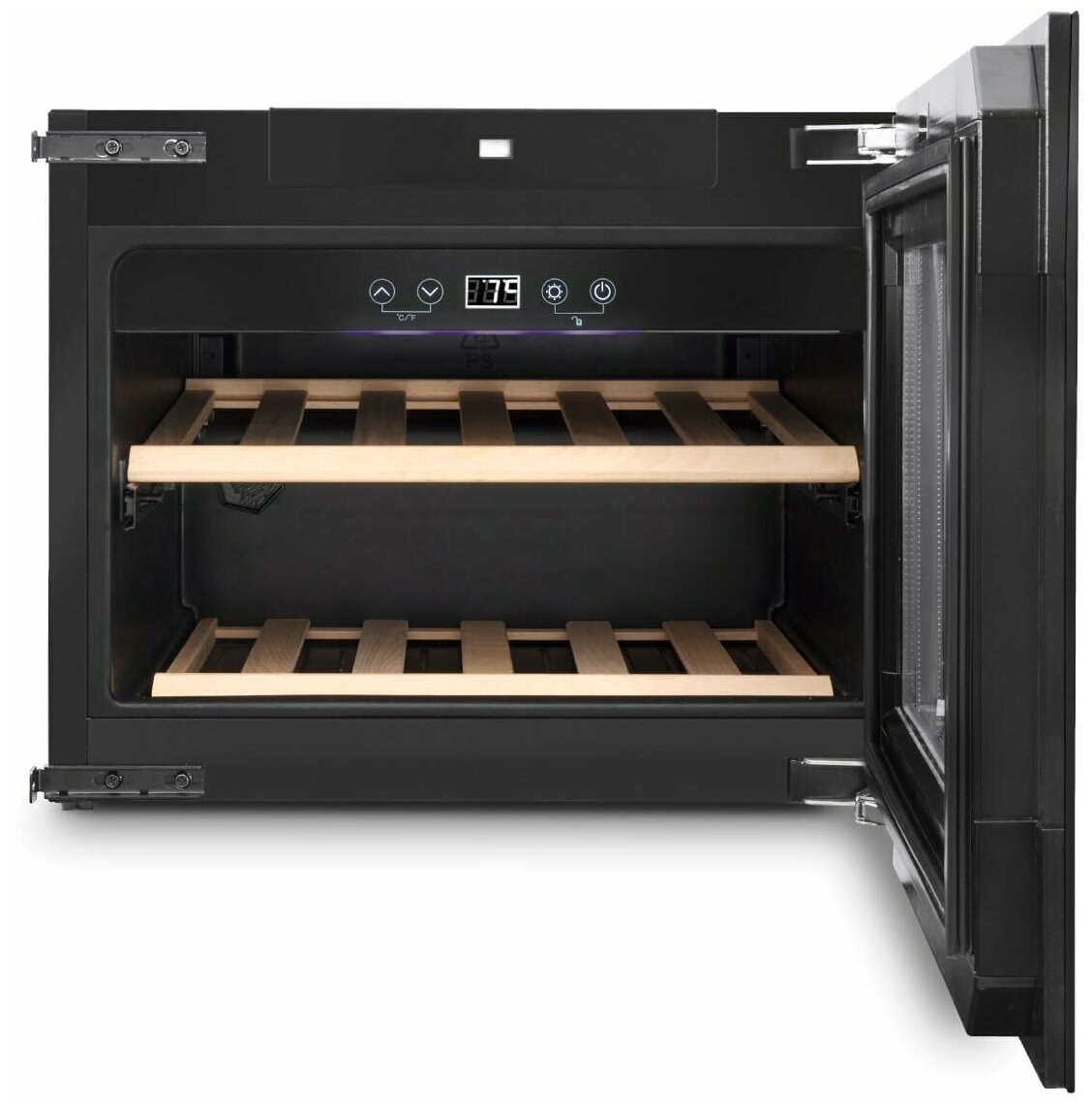 дисплей, перевешиваемые двери, Антивибрационная система, Винная камера, Влево, Вправо, Дизайнерское оформление, Ручки легкого открывания, Светодиодная подсветка, Система контроля влажности, Скрытые ручки