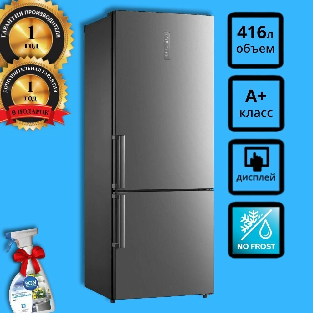 Долго выбирали холодильник не стандартной ширины 70-75 см. Этот оказался на порядок дешевле собратьев, но не представлен в крупных магазинах бытовой техники. Немного за это переживали, а зря. Вид шикарный - стального цвета двери и серый корпус. Функциональность на уровне, сборка отличная, ящики на удобных направляющих выезжают, подсветка шикарная. Аналог стоил на 16-17 тыс дороже и ни чем оказался не лучше.