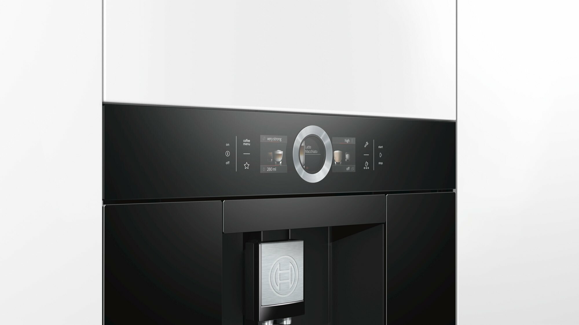 объем контейнера для молока: 0.5 л, сохранение названий 8 любимых кофейных напитков с разнообразным соотношением молока и эспрессо; возможность регулировки сопла подачи кофе и капучинатора по высоте; блокировка от детей; фильтр для воды «Brita»; счетчик чашек, максимальная высота чашки: 15 см