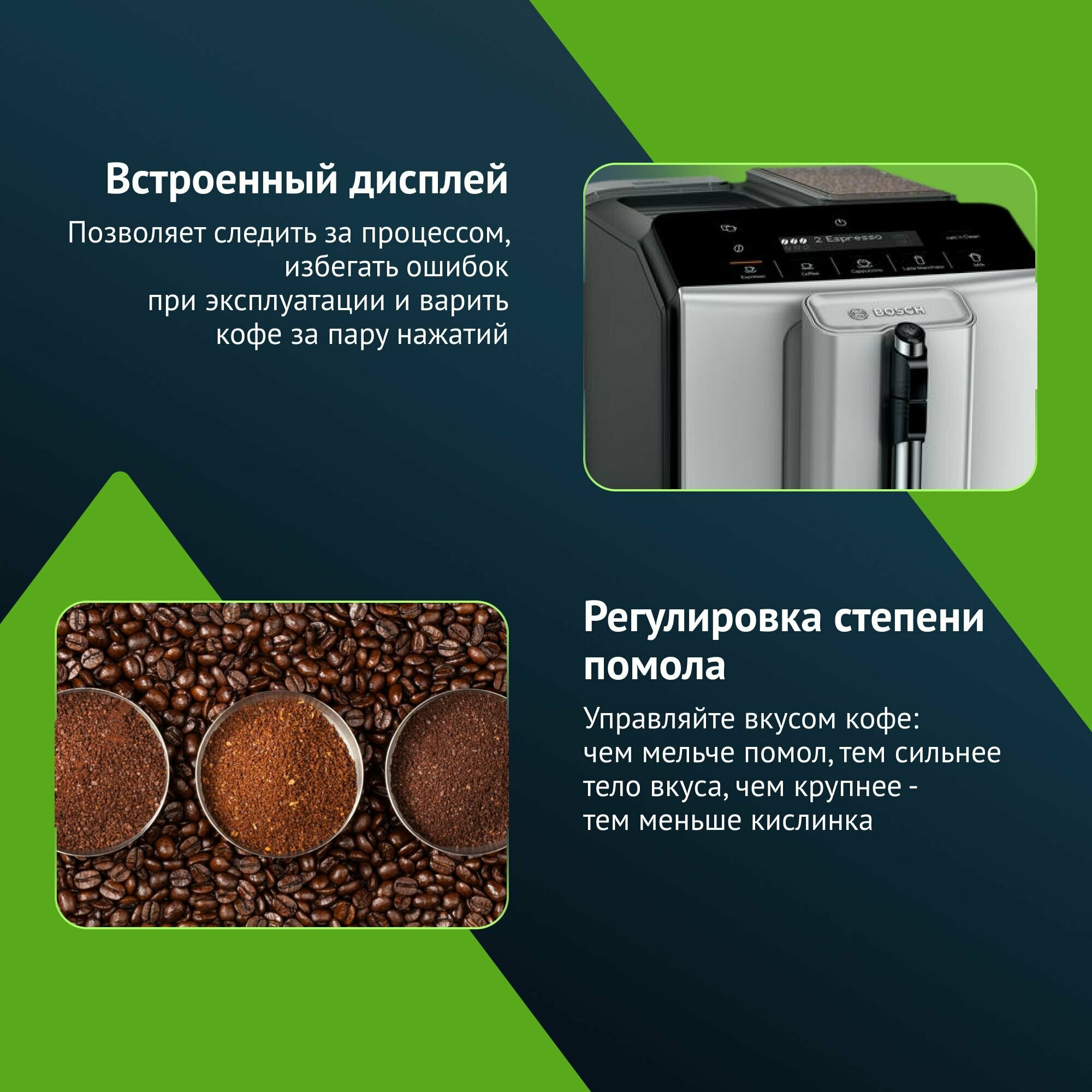 дисплей, индикатор включения, индикатор уровня воды, индикация отсутствия кофе, индикация работы, контейнер для отходов, отсек для шнура, подсветка, подсветка дисплея, съемный лоток для сбора капель, Автоматический выбор рецепта, Индикация готовности к работе, Индикация необходимости очистки от накипи, Противокапельная система, Режим самоочистки, Фильтр от накипи