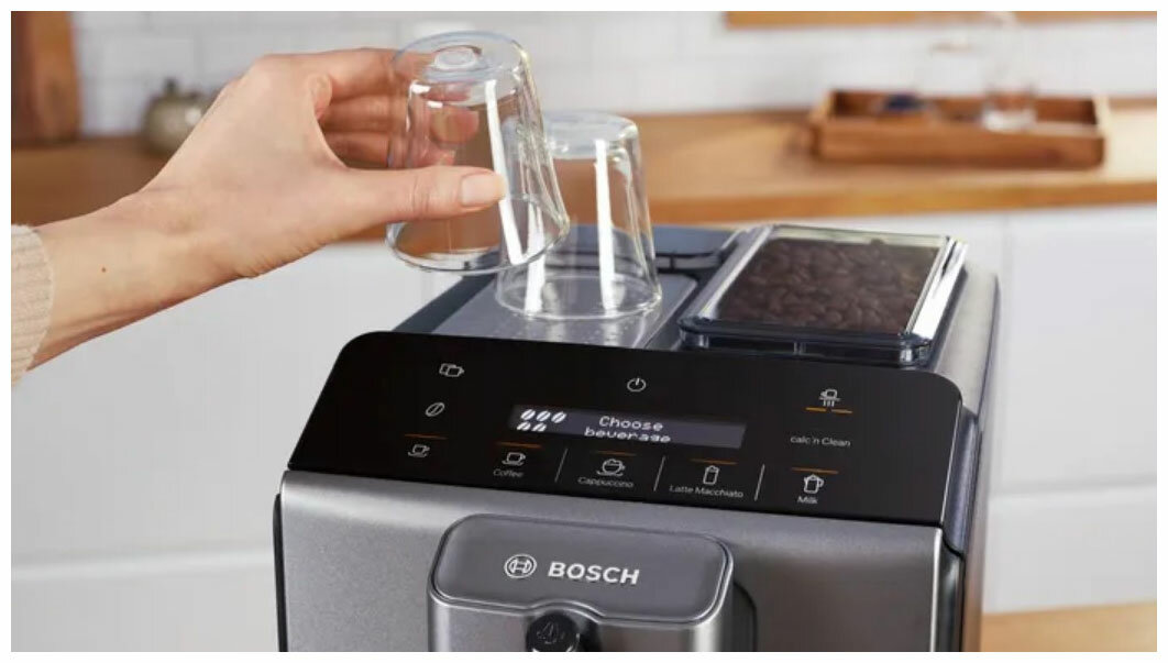 Кофемашина BOSCH TIS30321RW оборудована для одновременного приготовления двух чашек кофе