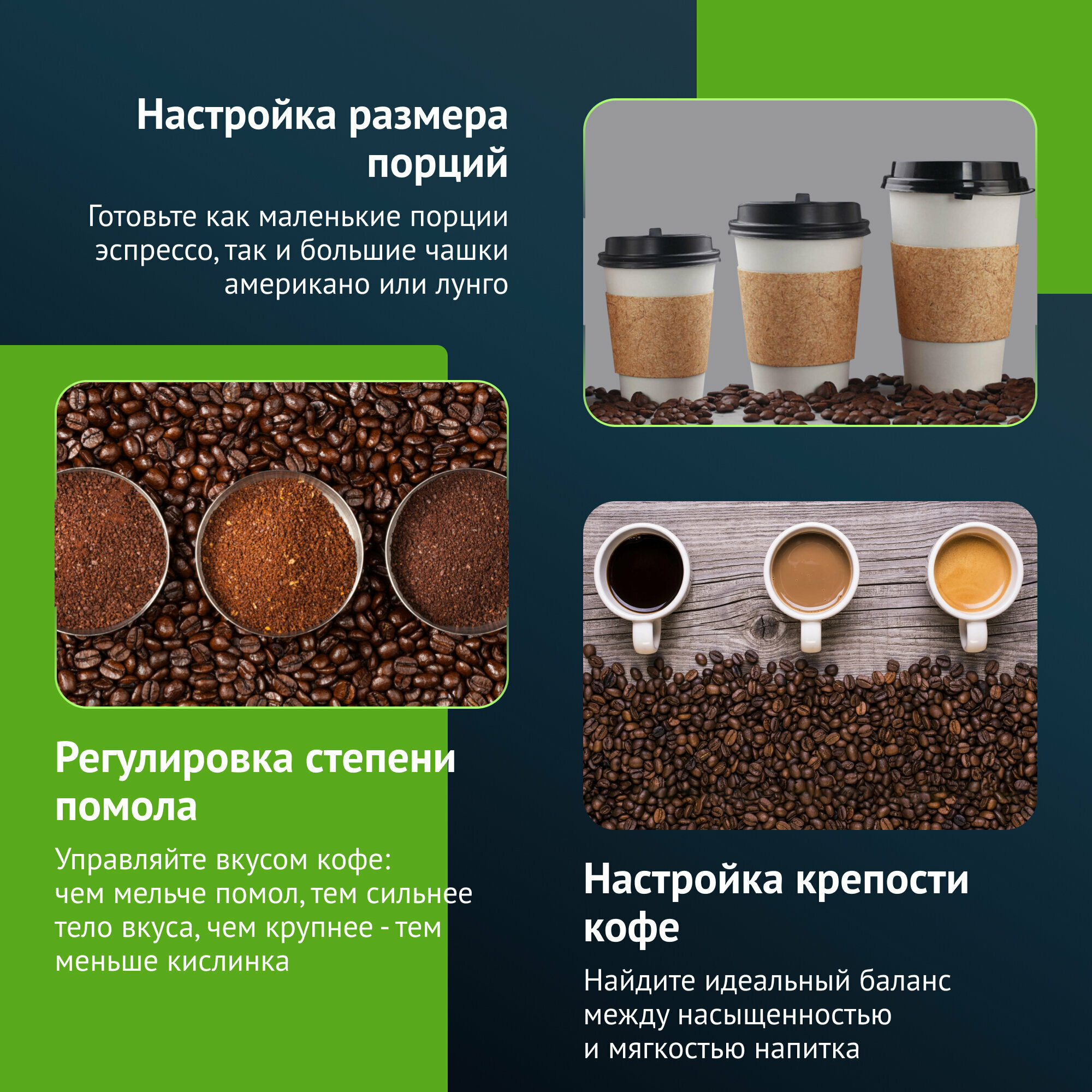 крепость кофе, температура кофе, Контроль крепости кофе, Настройка температуры напитка, Предварительное смачивание кофе, Регулировка крепости кофе, Регулировка объема порции, Регулировка порции воды, Регулировка степени помола, Регулировка температуры