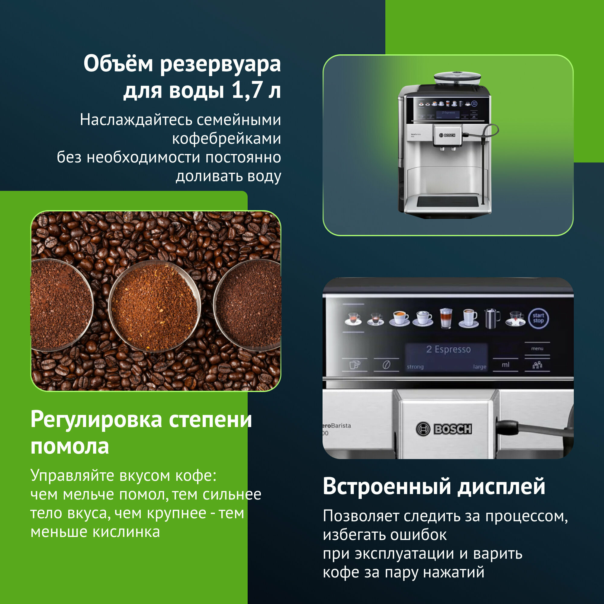 жесткость воды, крепость кофе, объем порции горячей воды, температура кофе, true, Контроль крепости кофе, Настройка температуры напитка, Регулировка порции воды, Регулировка степени помола