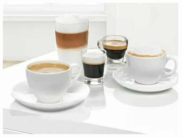 автоматическая декальцинация, автоотключение после приготовления напитка, автоотключение при неиспользовании, блокировка включения без воды, одновременное приготовление двух чашек, подача горячего молока, подача горячей воды, Автоотключение, Автоотключение при отсутствии воды, Да, Защита от перегрева, автоматическая очистка молочной системы