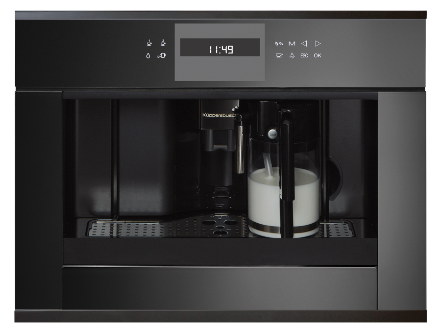 Размеры прибора (Ш x В x Г): ≈ 595 x 455 x 475 мм (вкл. фасад 20 мм и телескопические направляющие) Тип установки: Встраиваемый Возможность выбора крепости кофе (5 предварительно заданных уровней) Емкость для воды заполняется спереди Количество программ: 5 Программируемое время включения 3 температуры кофе на выбор Съемный контейнер для молока с функцией очистки Функция подачи молока для приготовления капучино или латте Электронный таймер с белыми индикаторами