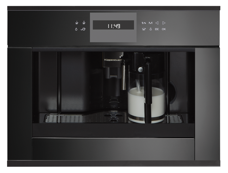 Размеры прибора (Ш x В x Г): ≈ 595 x 455 x 475 мм (вкл. фасад 20 мм и телескопические направляющие) Тип установки: Встраиваемый Возможность выбора крепости кофе (5 предварительно заданных уровней) Емкость для воды заполняется спереди Количество программ: 5 Программируемое время включения 3 температуры кофе на выбор Съемный контейнер для молока с функцией очистки Функция подачи молока для приготовления капучино или латте Электронный таймер с белыми индикаторами