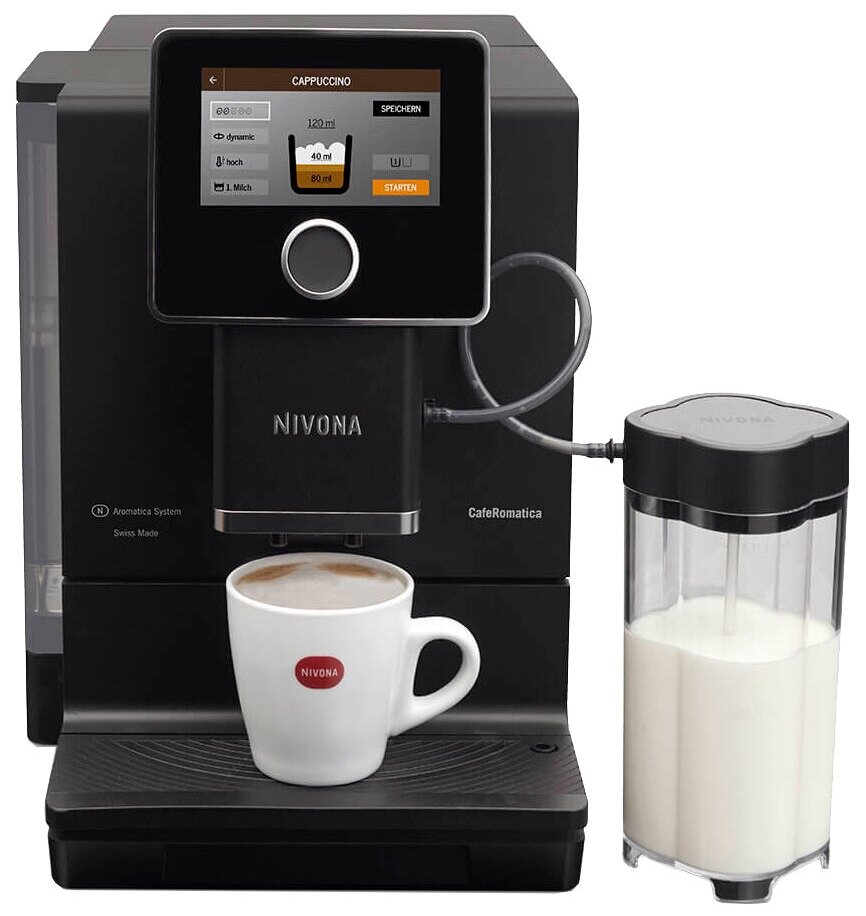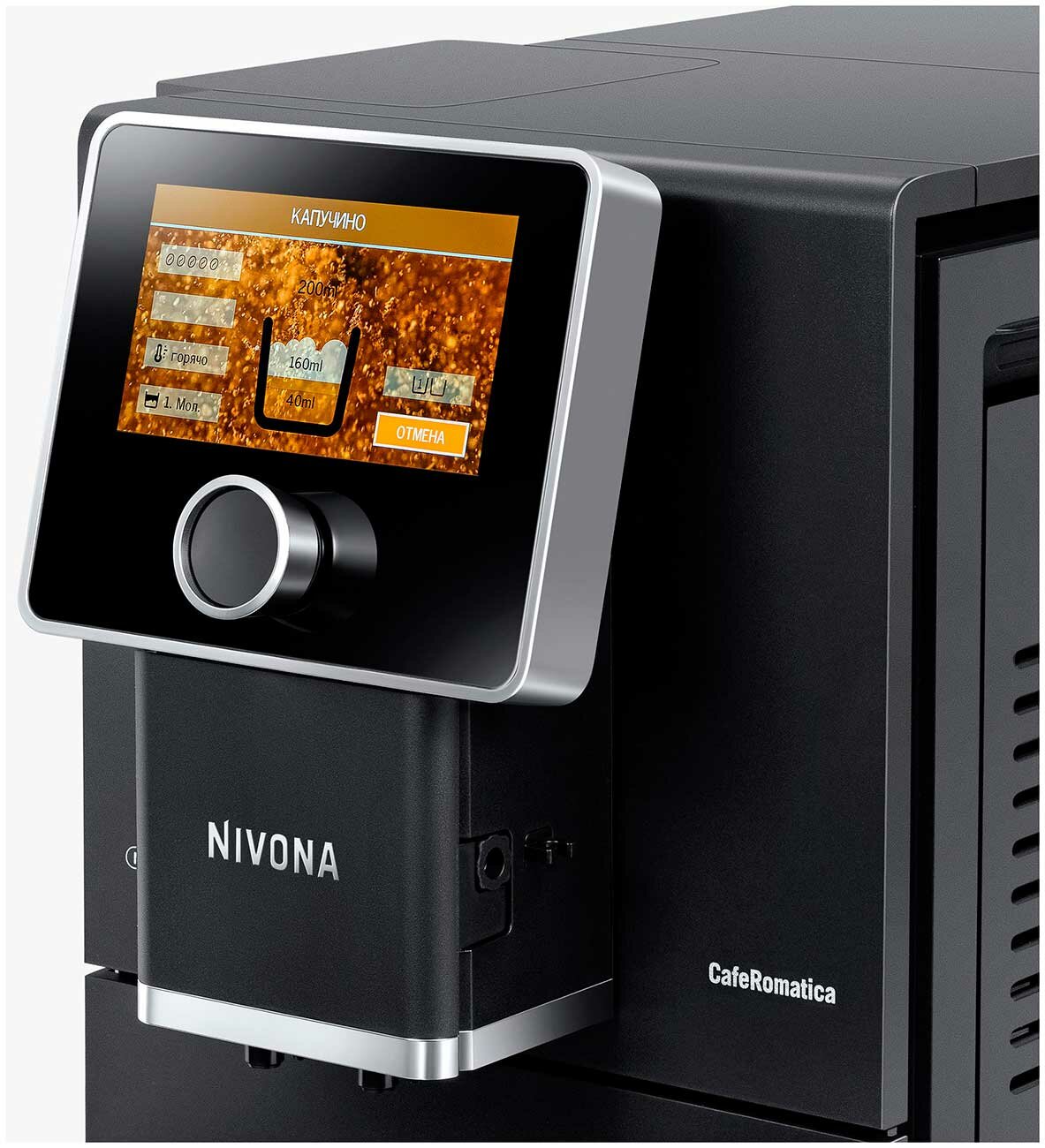 автоматическая декальцинация, автоотключение после приготовления напитка, автоотключение при неиспользовании, блокировка включения без воды, одновременное приготовление двух чашек, подача горячей воды, подогрев чашек, предварительное смачивание, программа автоматической очистки, противокапельная система, 1 термоблок, Автоматическая программа очистки кофейных масел, Автоматический контроль уровня зерен и воды, Автоополаскиватель капучинатора, Автоотключение, Автоотключение при отсутствии воды, Защита от избыточного давления, Защита от перегрева, Защита от перегрузки (автоматический предохранитель), Индикация декальцинации, Индикация наличия зерен, Интерактивное программирование рецептов, Конические жернова из закаленной стали, Мобильное приложение Nivona App (встроенный Bluetooth), Молочный напиток одной кнопкой (OneTouch SPUMATORE), Регулировка настроек во время приготовления, Система экстракции кофе (Aroma Balance System): 3 степени, Эко-режим