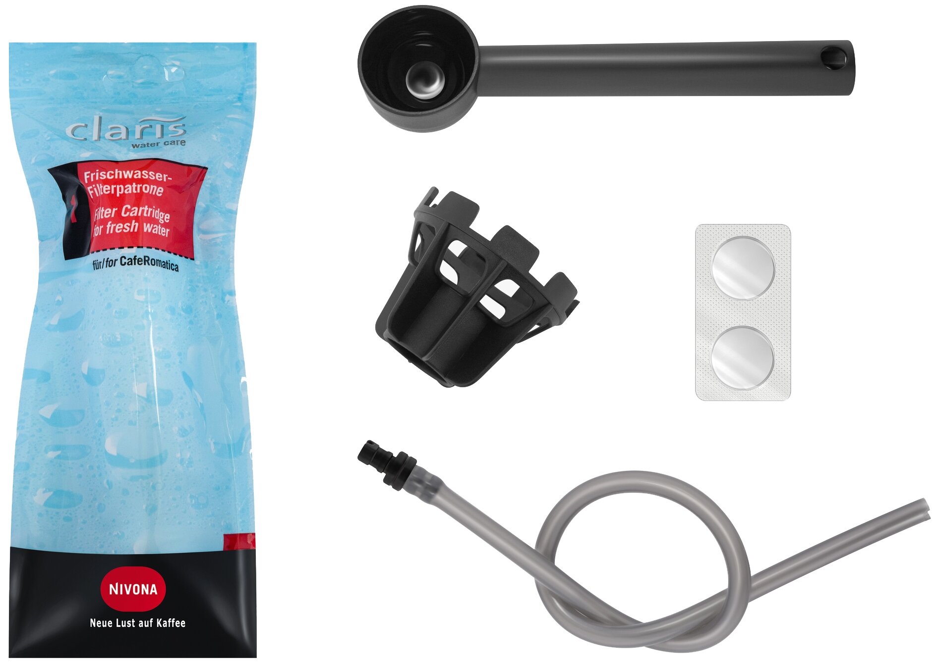 регулируемый по высоте узел подачи кофе; энергосберегающий режим; автоматические программы промывки системы; фильтр для воды Claris; мерная ложка; 3 степени крепости кофе; задние ролики для передвижения машины