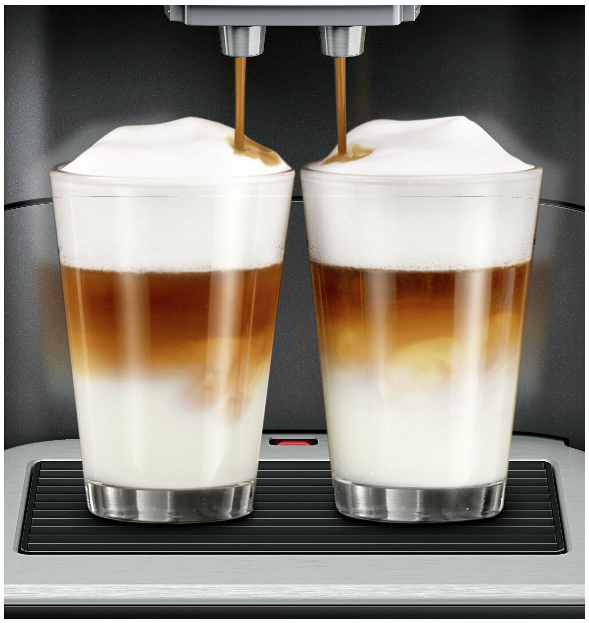 Довольно тихая. Давление 19 бар. Возможность готовить 2 напитка сразу. Возможность изменять температуру напитка, объём, крепость, объём молока или пены,кофе в установленных напитках. Есть такой напиток как картадо, флэт уайт, эспрессомакиато, и т.д. молоко забирает из любой ёмкости по средством трубочки. После использования автоматически промывает систему подачи молока и кофе. Разборный диспенсер. 2 напитка есть возможность запомнить.