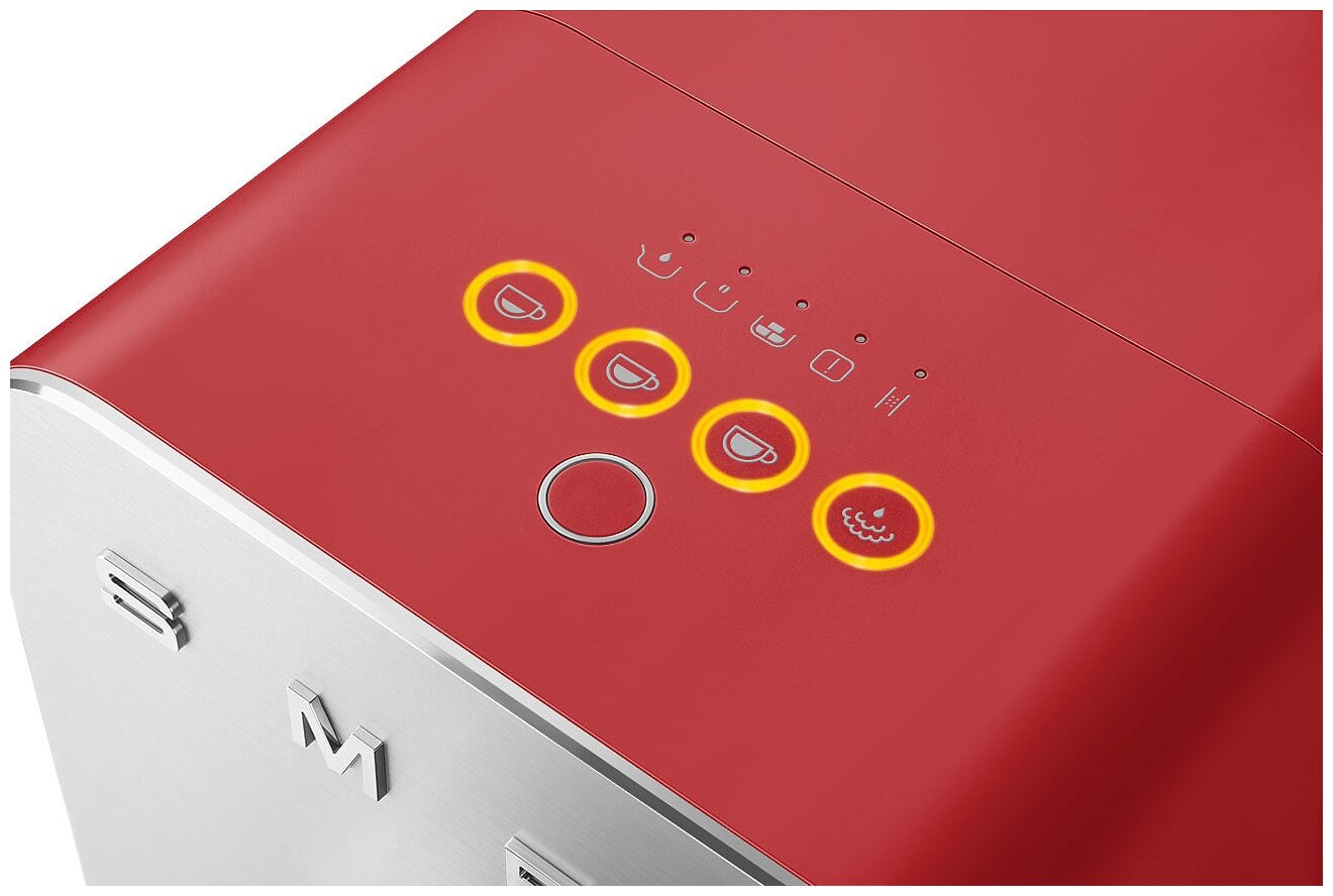 дисплей, индикатор уровня воды, индикация отсутствия кофе, индикация работы, контейнер для отходов, отсек для шнура, подсветка, съемный лоток для сбора капель, Автоматический выбор рецепта, Авторегулирование времени заваривания, Индикация готовности к работе, Индикация необходимости очистки от накипи, Очистка от накипи, Противокапельная система, Режим самоочистки, Ретро-стиль