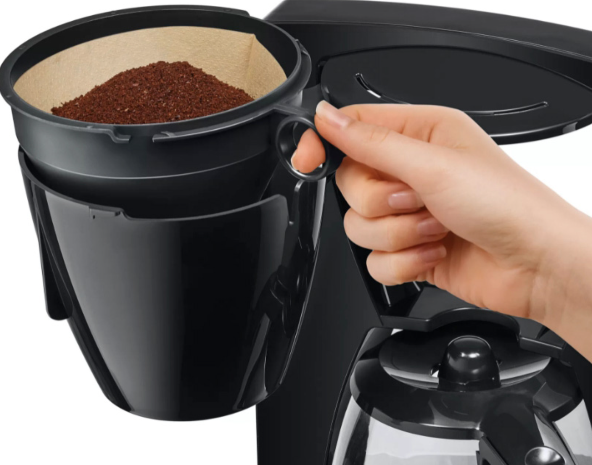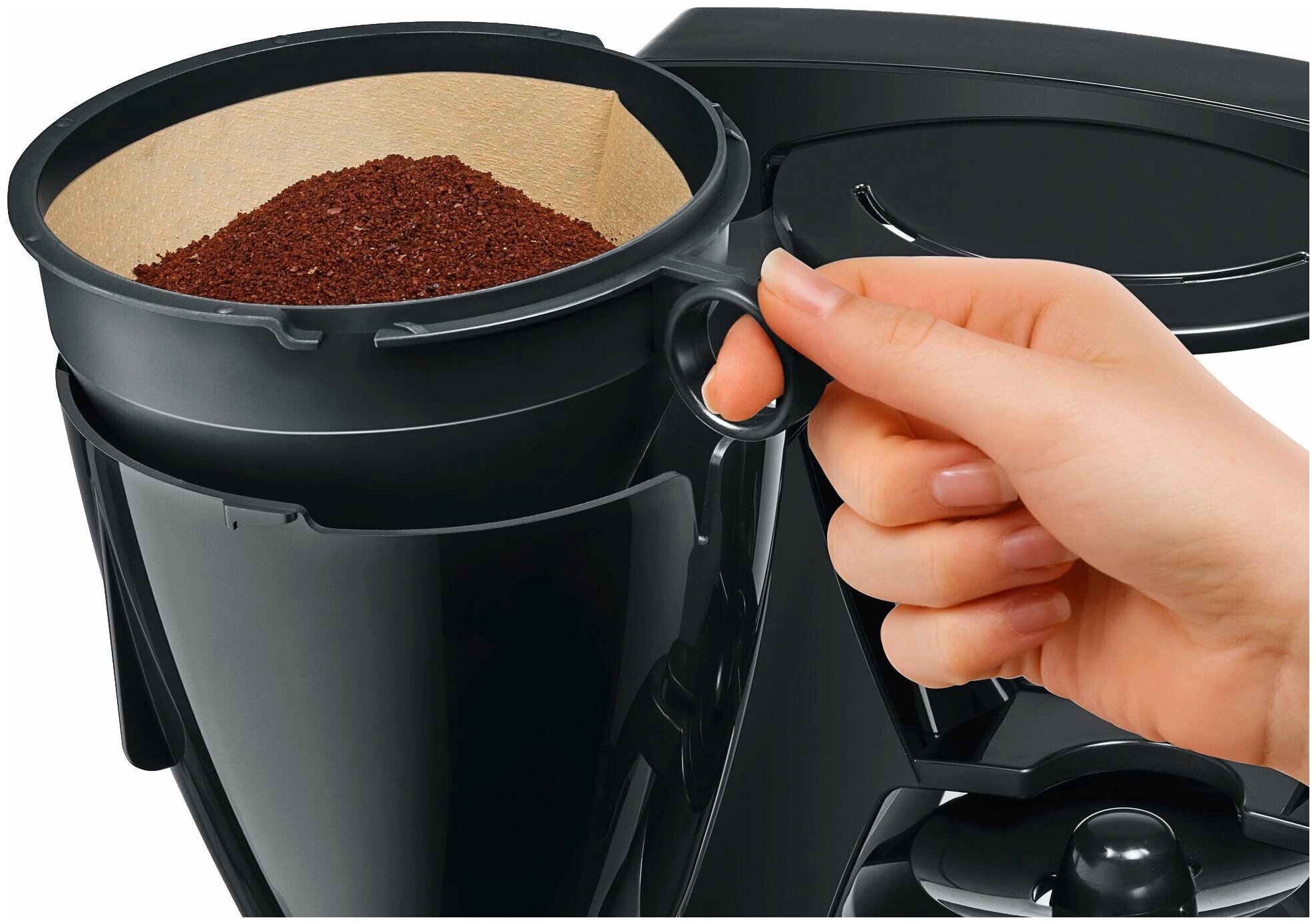 вращающийся фильтродержатель, индикатор включения, индикатор уровня воды, индикация работы, контейнер для отходов, отсек для шнура, плита автоподогрева, съемный лоток для сбора капель, Авторегулирование времени заваривания, Индикация необходимости очистки от накипи, Очистка от накипи, Противокапельная система, Режим самоочистки, Съемный многоразовый фильтр