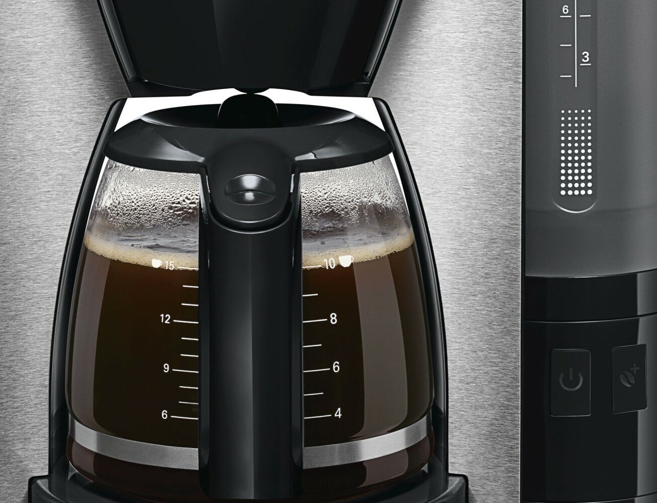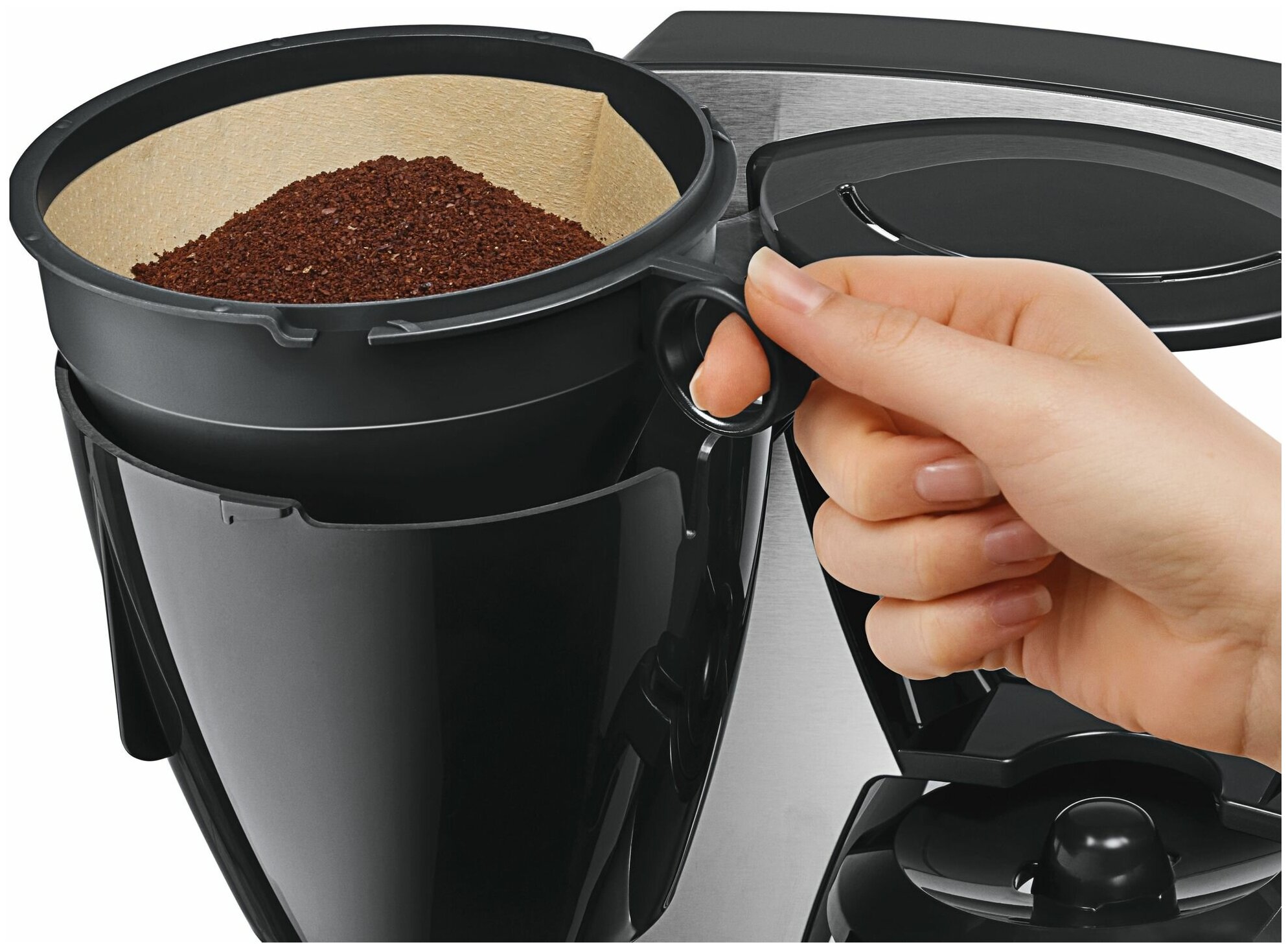 вращающийся фильтродержатель, индикатор включения, индикатор уровня воды, отсек для шнура, плита автоподогрева, Очистка от накипи, Противокапельная система, индикатор отсутствия кофе