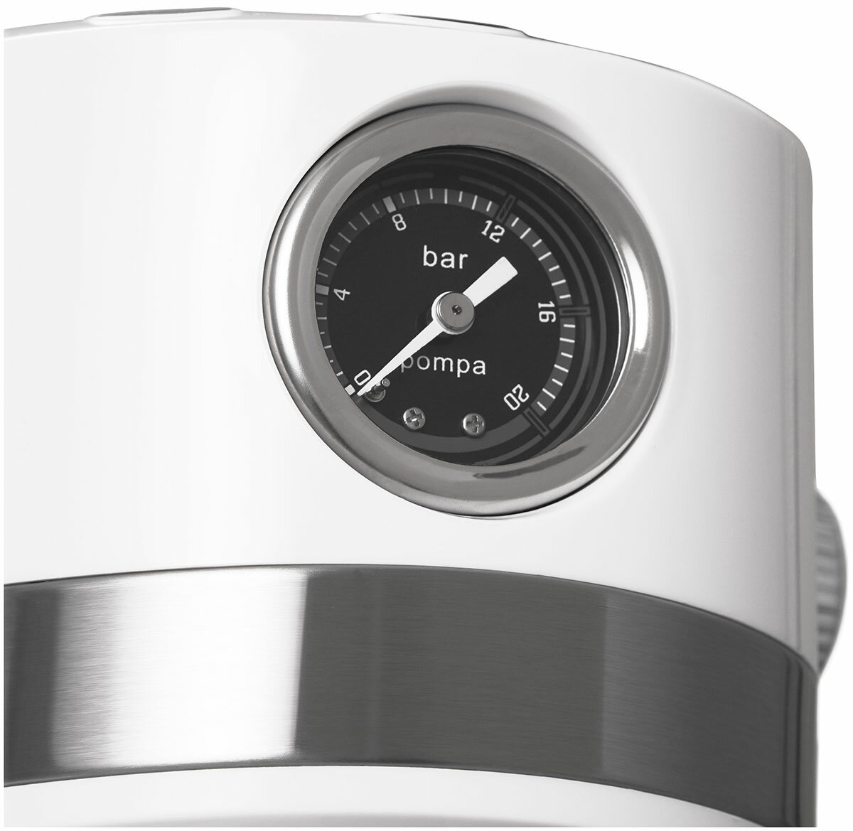 автоматическая декальцинация, автоотключение после приготовления напитка, манометр, одновременное приготовление двух чашек, подача горячей воды, подогрев чашек