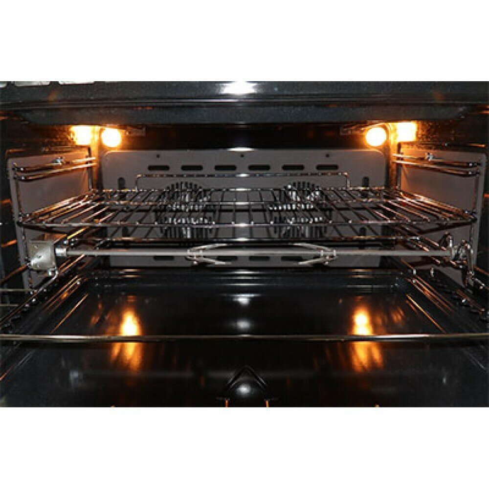 вертел, подсветка духовки, часы, чугунные решетки, ящик для посуды, Встроенные часы