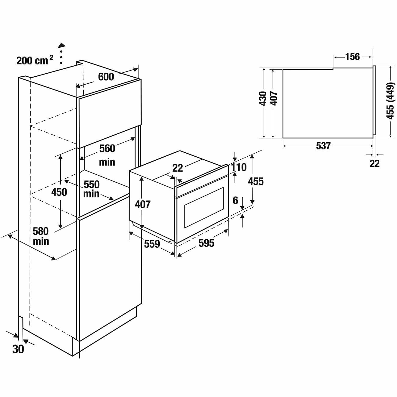 Ширина встраивания (см)