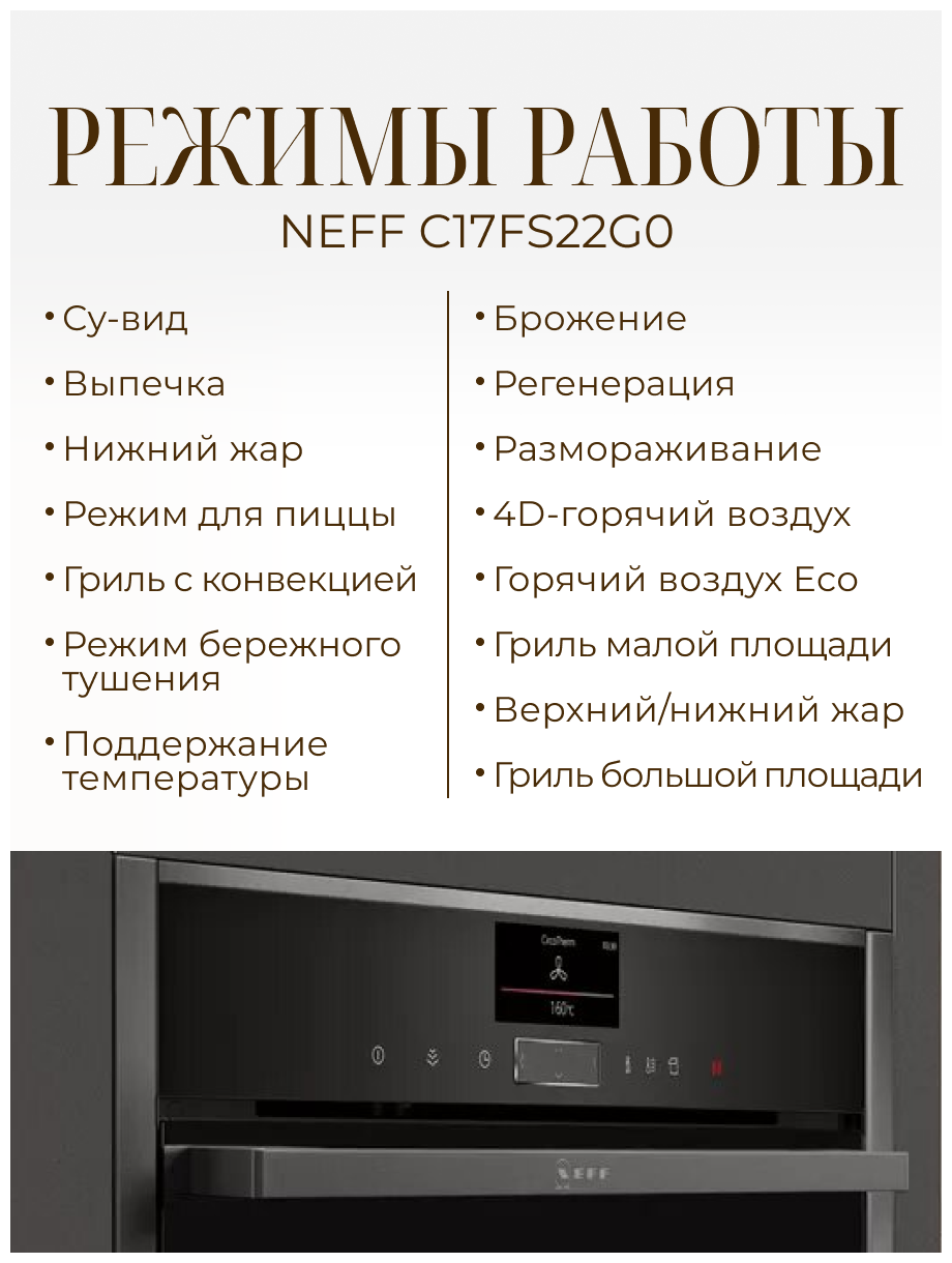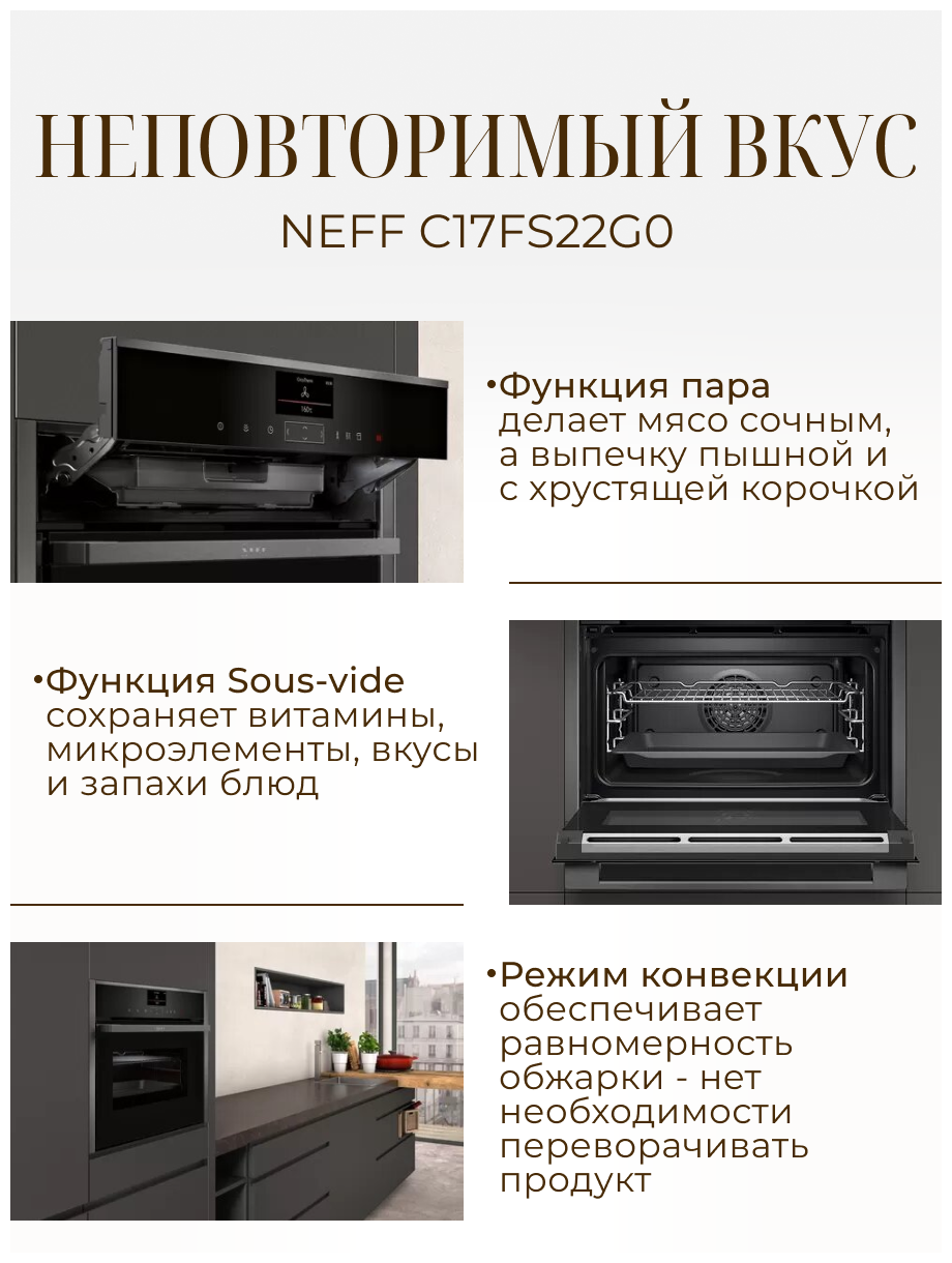 Компактный духовой шкаф-пароварка Neff C17FS22G0