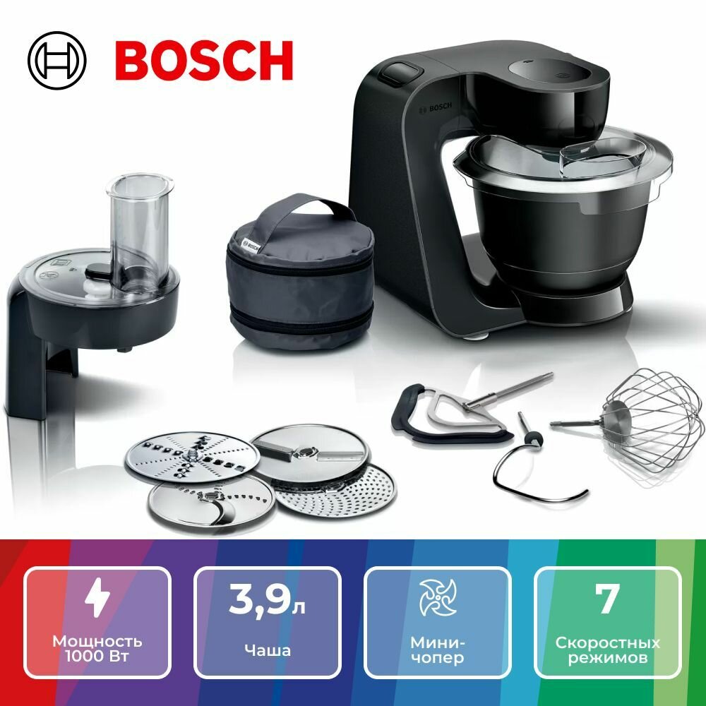 защита от перегрузки, импульсный режим, планетарное движение, Автоматическое замешивание теста, Автоотключение, Блокировка крышки, Защита от брызг, Защита от перегрузки (автоматический предохранитель), мойка съемных частей в посудомоечной машине, планетарное вращение, прорезиненные ножки