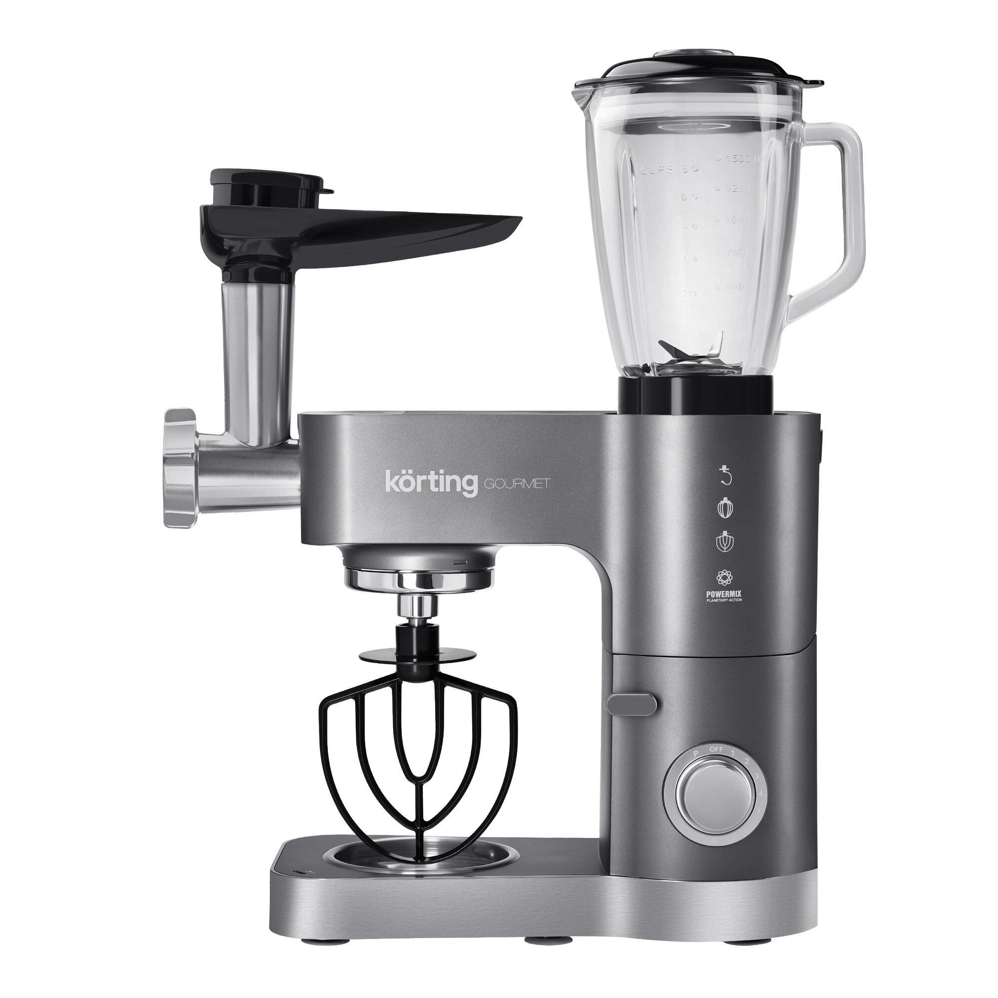 кухонная машина в сборе - 1 шт., чаша с ручкой - 1 шт., крышка чаши - 1 шт., венчик для взбивания - 1 шт., крюк для замешивания - 1 шт., насадка для смешивания - 1 шт., кольцевая гайка - 1 шт., решетки - 2 шт., нож - 1 шт., шнек - 1 шт., съемный рабочий блок - 1 шт., съемный лоток - 1 шт., толкатель - 1 шт., насадка для приготовления колбас - 1 шт., насадка для кеббе - 1 шт., кувшин блендера - 1 шт., крышка блендера - 1 шт., основание блендера с ножами - 1 шт., мерный колпачок - 1 шт., книга рецептов, руководство для эксплуатации с гарантийным талоном