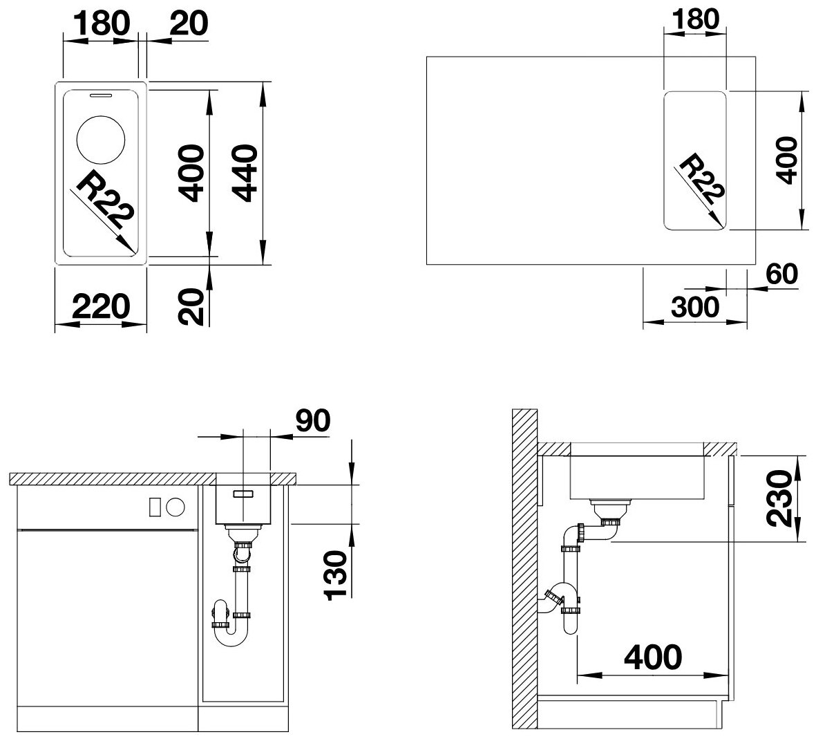 Кухонная мойка Blanco ANDANO 180-U 522952 нерж.сталь