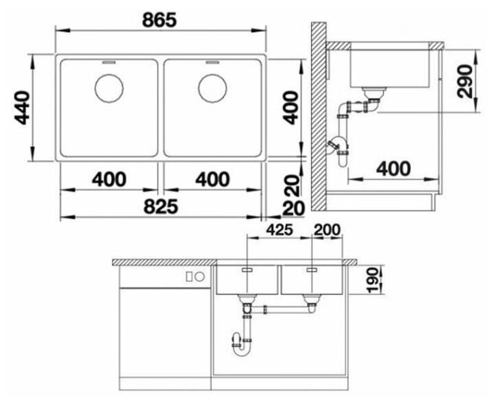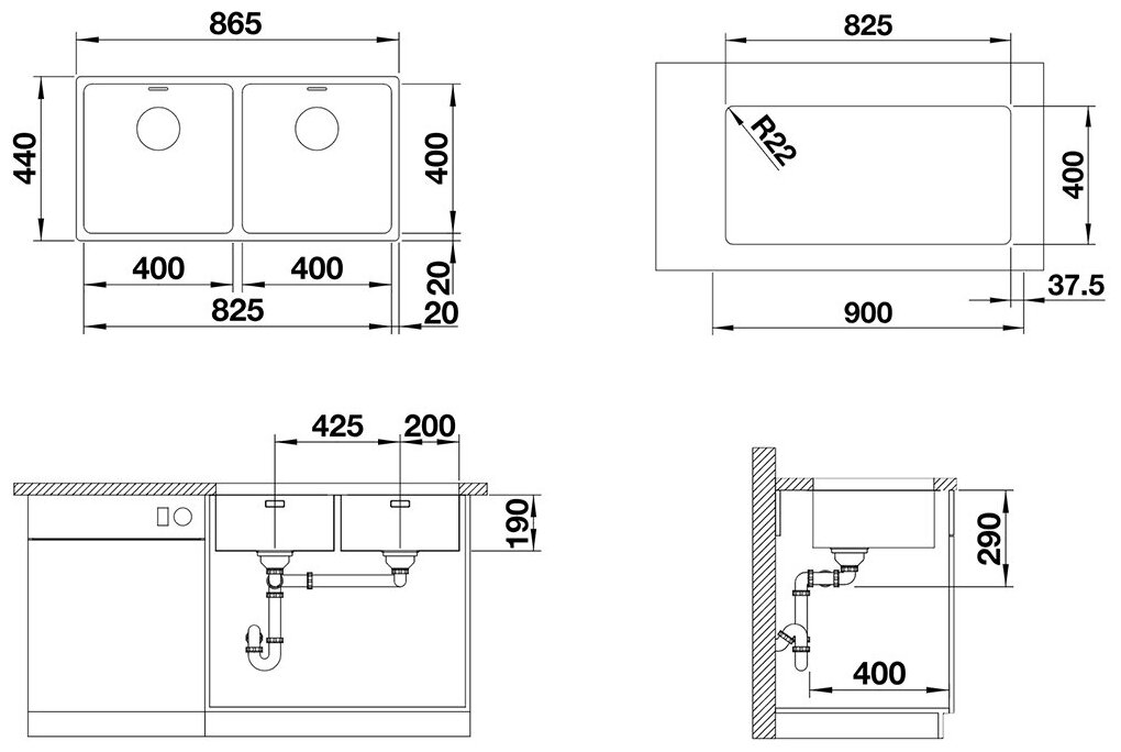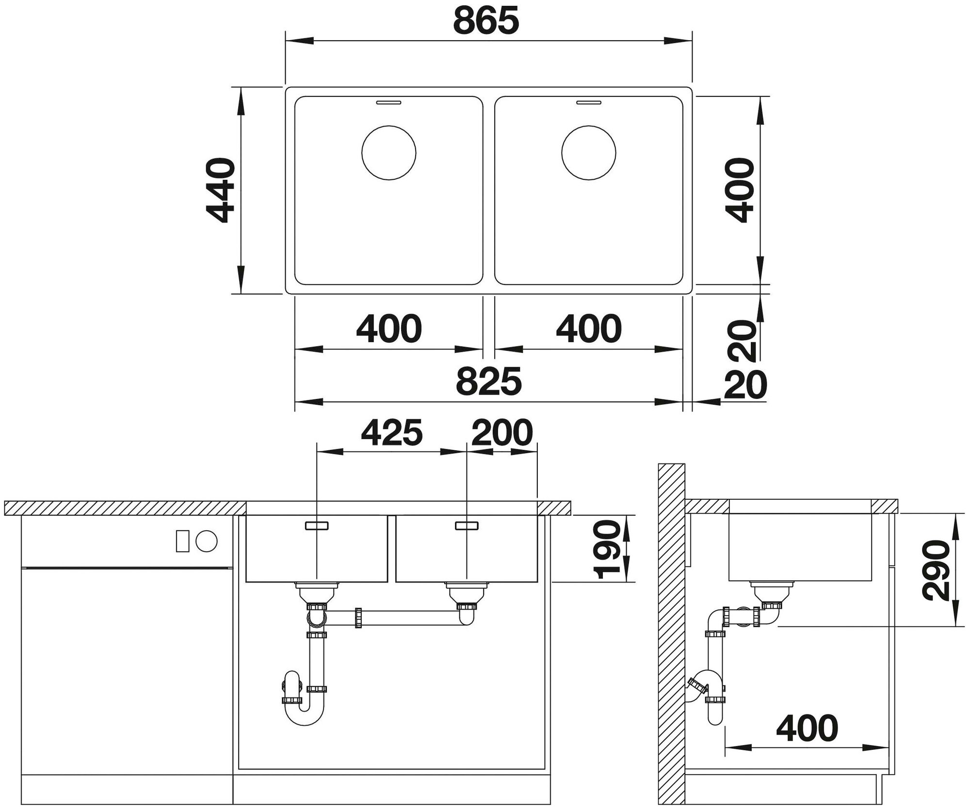Кухонная мойка Blanco ANDANO 400/400-U 522987 нерж.сталь