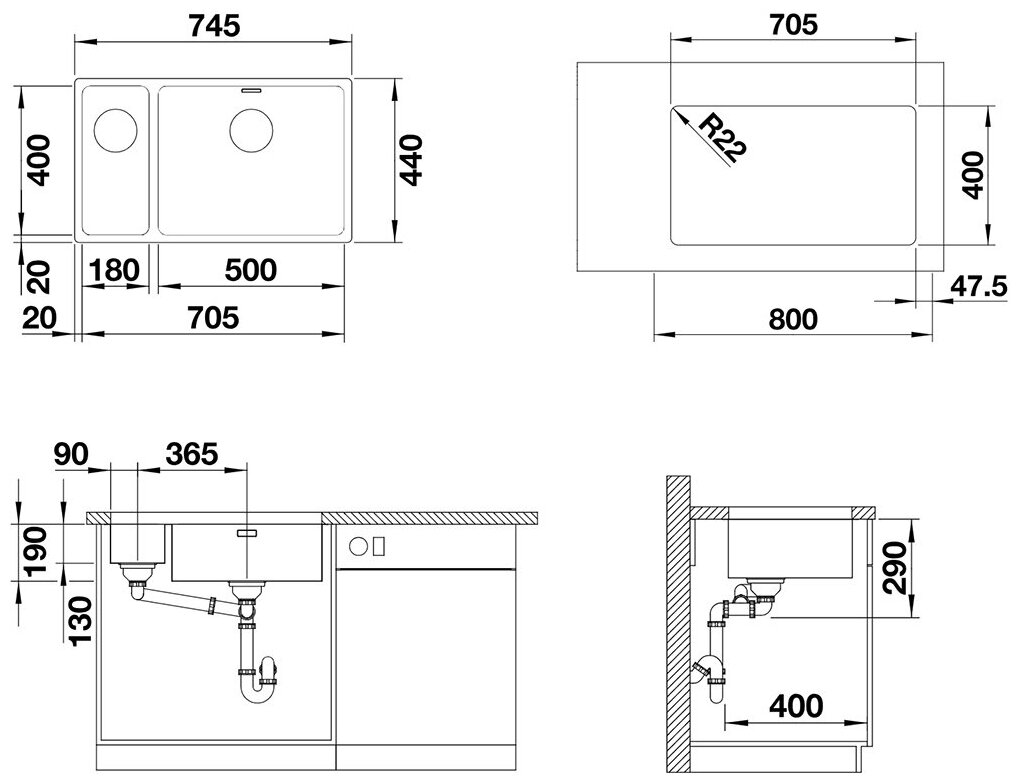 Отзывы о Кухонная мойка Blanco ANDANO 500/180-U нержавеющая сталь (522991)
