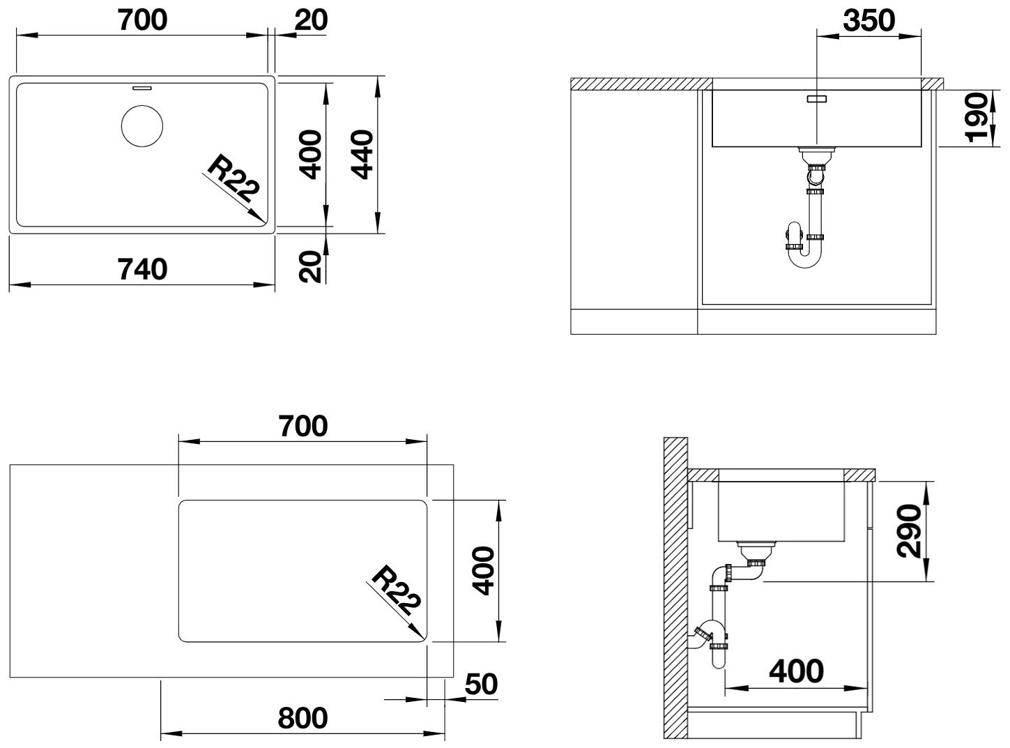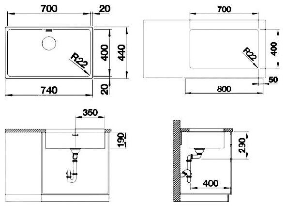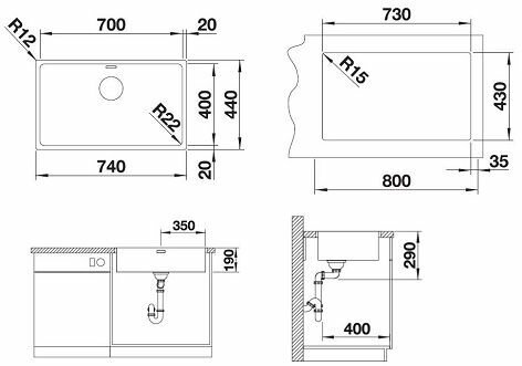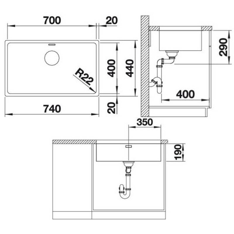 Кухонная мойка Blanco ANDANO 700-U нержавеющая сталь 522971