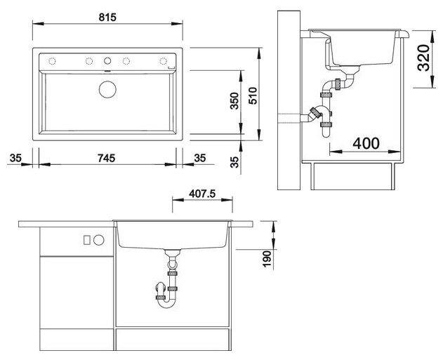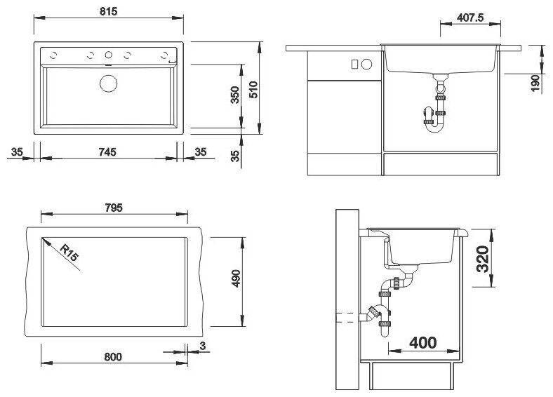 Большие размеры в габаритах обычной столешницы, можно не только помыть крупную посуду, но и умыться - брызги не летят во все стороны! В комплекте вся высококачественная отводная система.