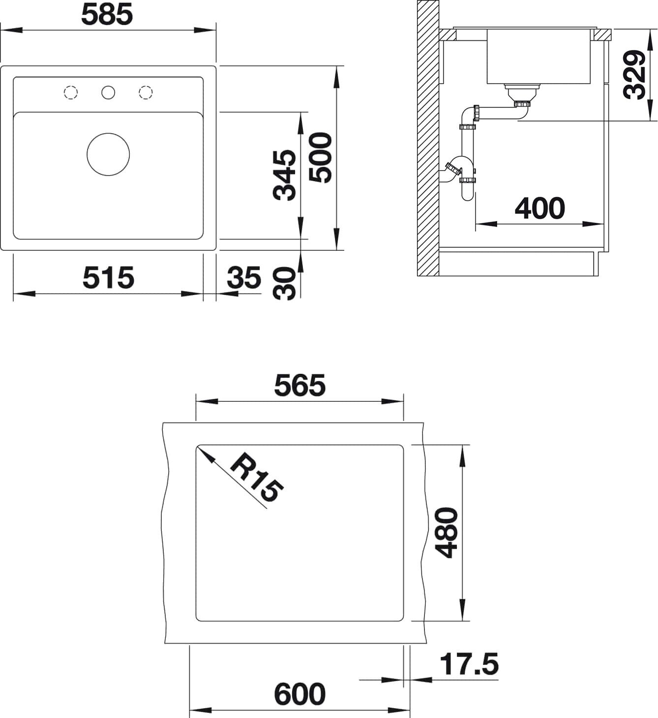 диаметр сливного отверстия 3,5 дюйма (8,89 см)