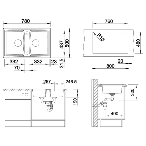 Кухонная мойка Blanco Lexa 8 524961 тёмная скала