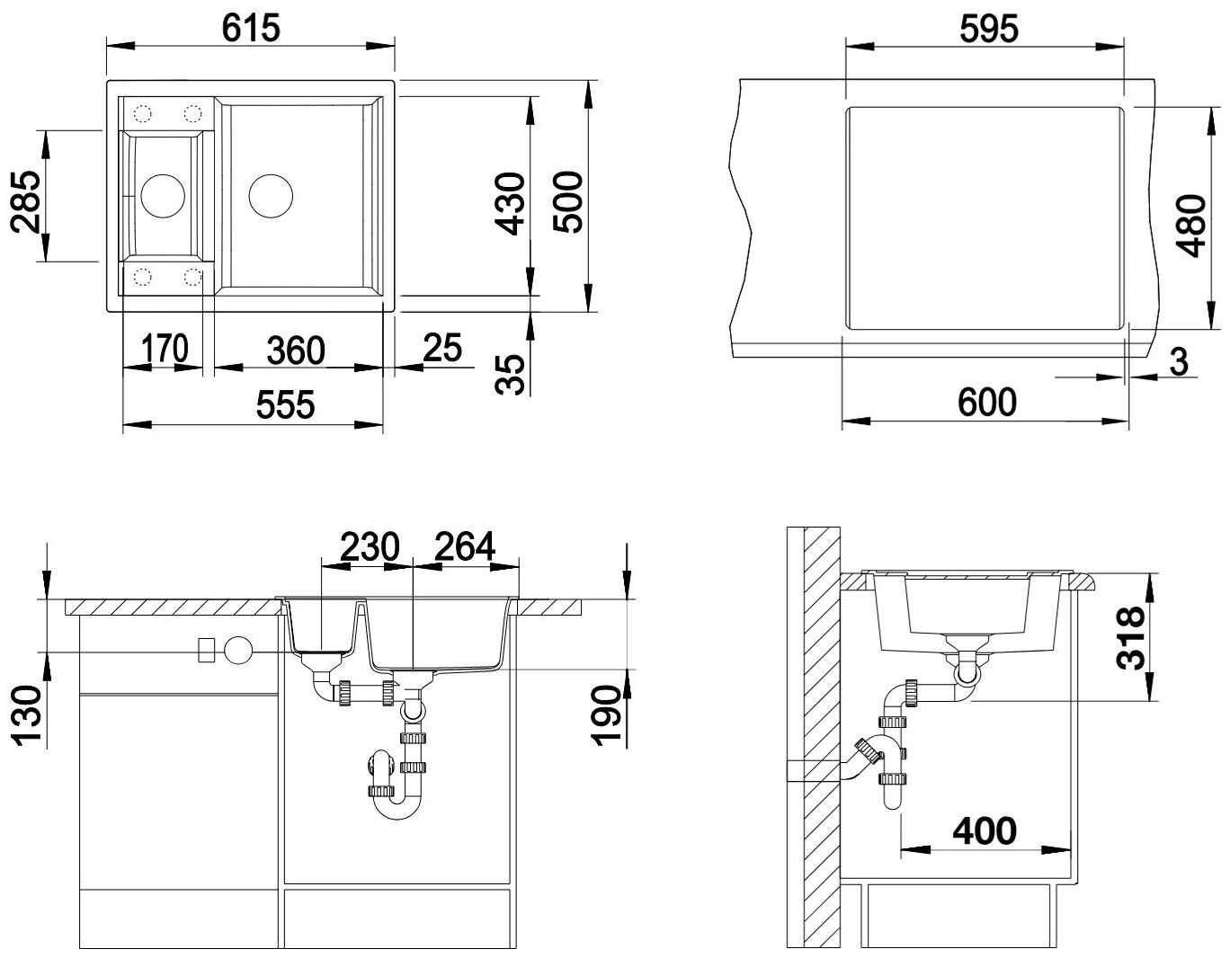 клапан-автомат, корзинчатый вентиль, отверстие под смеситель, Мойка 1 шт