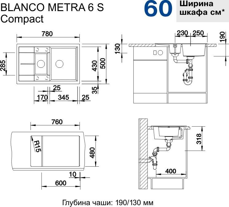 Кухонная мойка Blanco METRA 6 S Compact черный 525925