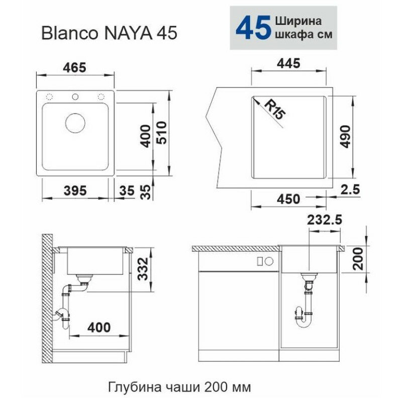 Кухонная мойка Blanco NAYA 45 черный Silgranit 526572