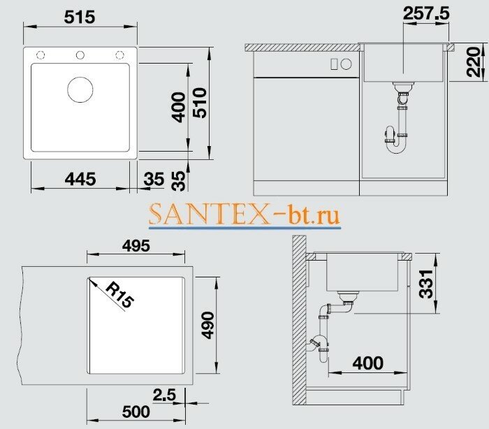 клапан-автомат, коландер, корзинчатый вентиль, отверстие под смеситель, разделочная доска