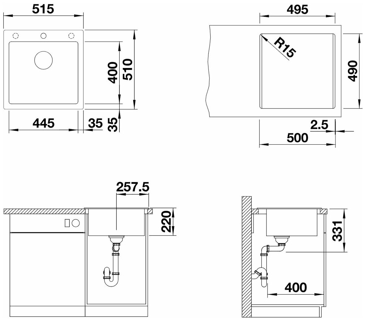 клапан-автомат, коландер, корзинчатый вентиль, отверстие под смеситель, разделочная доска