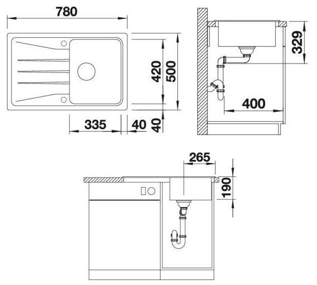 Кухонная мойка Blanco SONA 45S SILGRANIT Темная скала (519663)