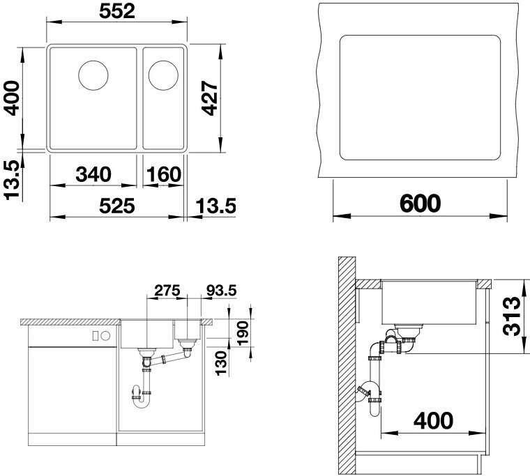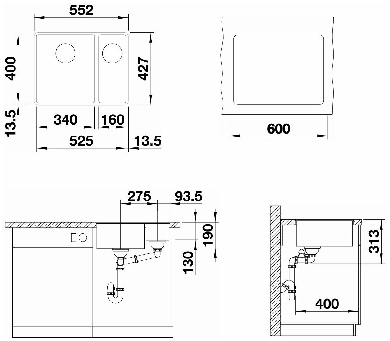 Кухонная мойка Blanco Subline 340/160-F жасмин 523572