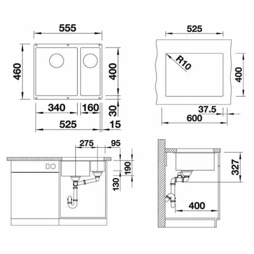 Кухонная мойка Blanco Subline 340/160-U чаша справа кофе 523567