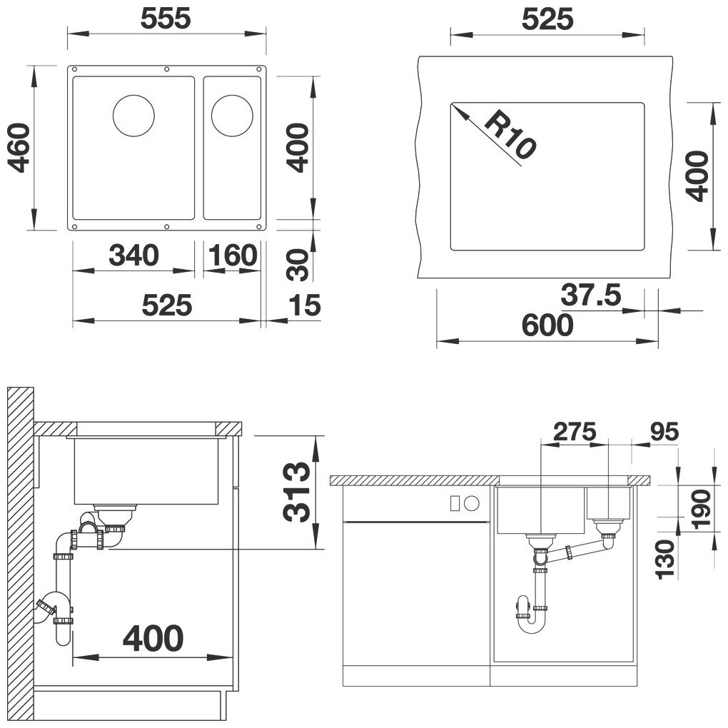 Кухонная мойка Blanco SUBLINE 340/160-U черный правая 525986