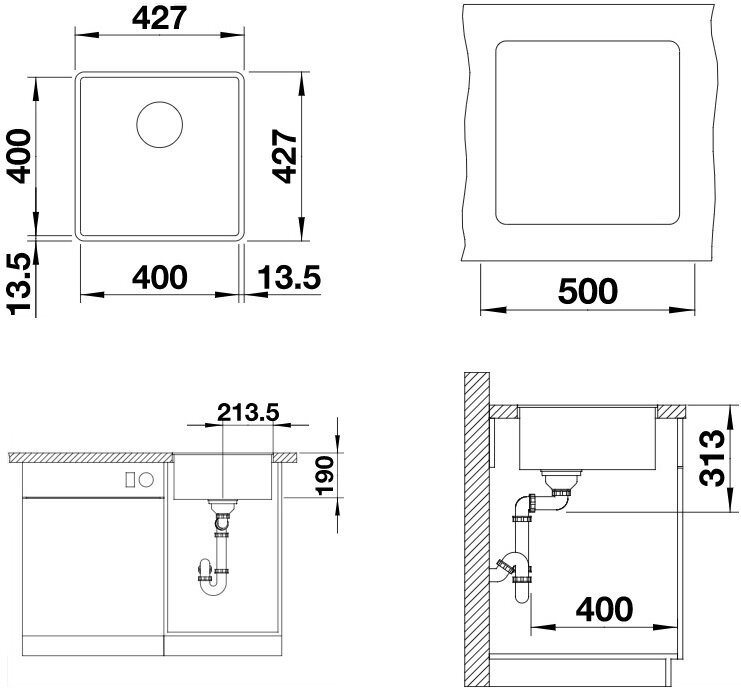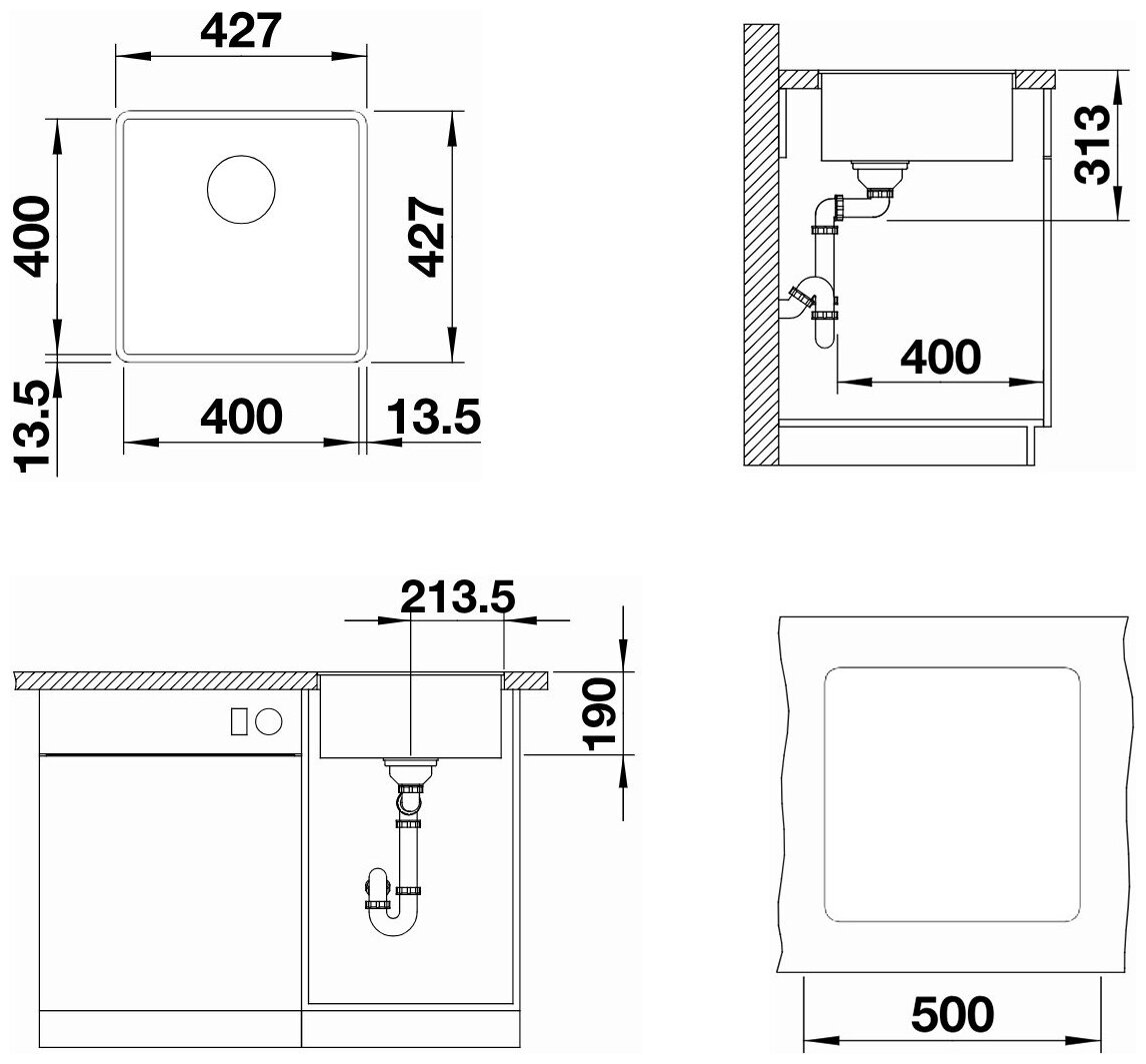 Кухонная мойка Blanco SUBLINE 400-F 523496 алюметаллик