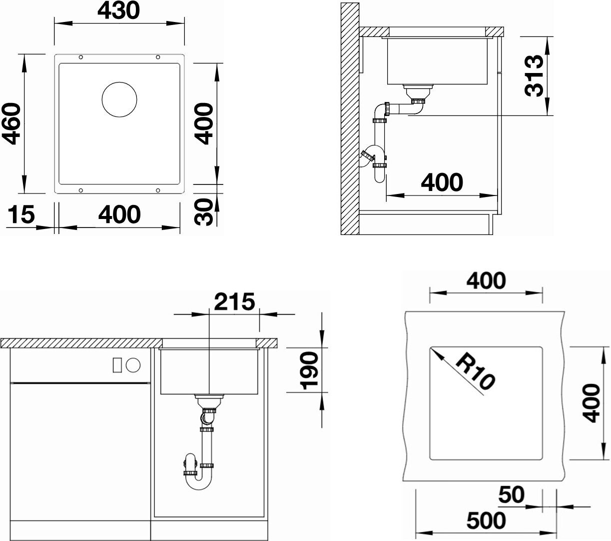 Кухонная мойка Blanco SubLine 400-u антрацит 523422