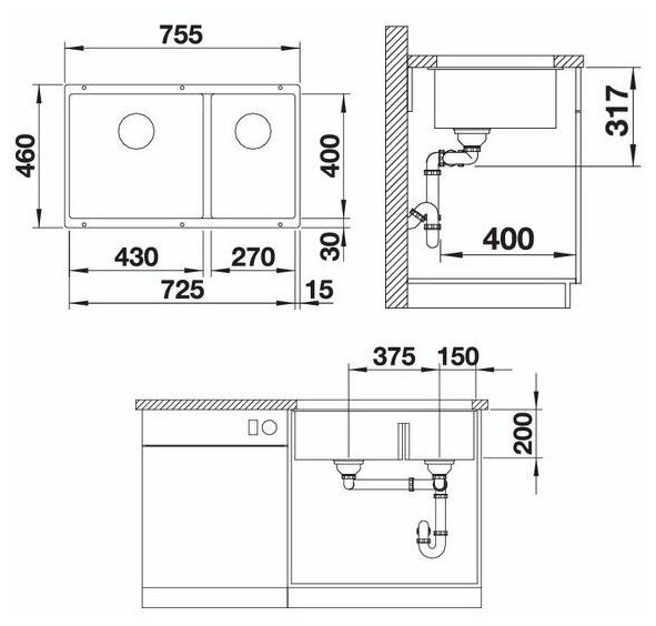 Кухонная мойка Blanco SUBLINE 430/270-U 523157 шампань