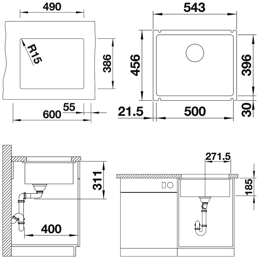 Кухонная мойка Blanco Subline 500-U Глянцевая магнолия 523734