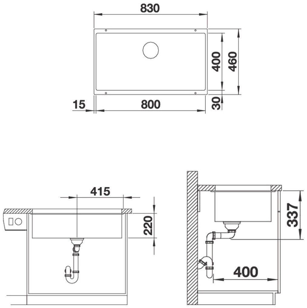 Кухонная мойка Blanco Subline 800-U алюметаллик InFino 523143