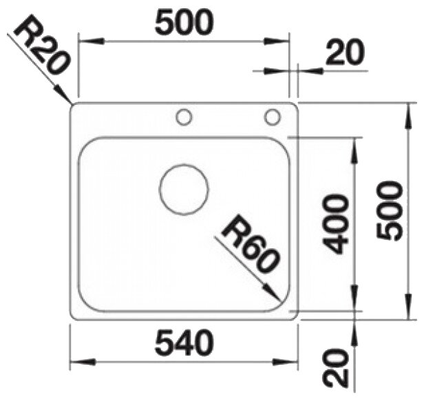клапан-автомат, корзинчатый вентиль, отверстие под смеситель, Мойка 1 шт