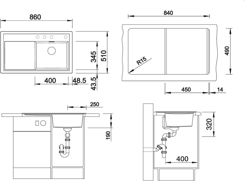 Кухонная мойка Blanco ZENAR 45S 523810 чаша слева белый
