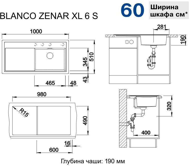 Отзывы о Кухонная мойка Blanco ZENAR XL 6S InFino антрацит чаша слева 523994