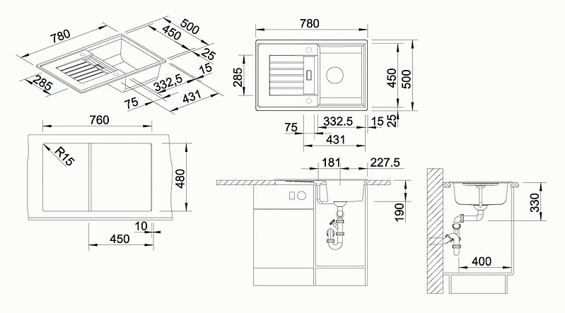 Кухонная мойка Blanco ZIA 45 S черный Silgranit 526013