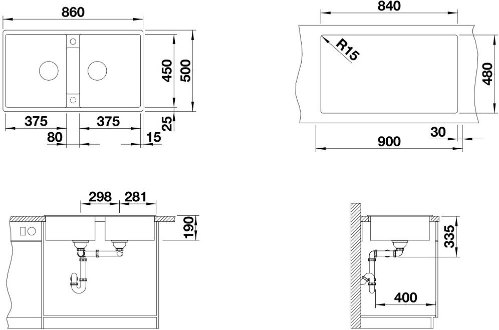 дополнительная чаша, Перелив, С сифоном, Сливной клапан