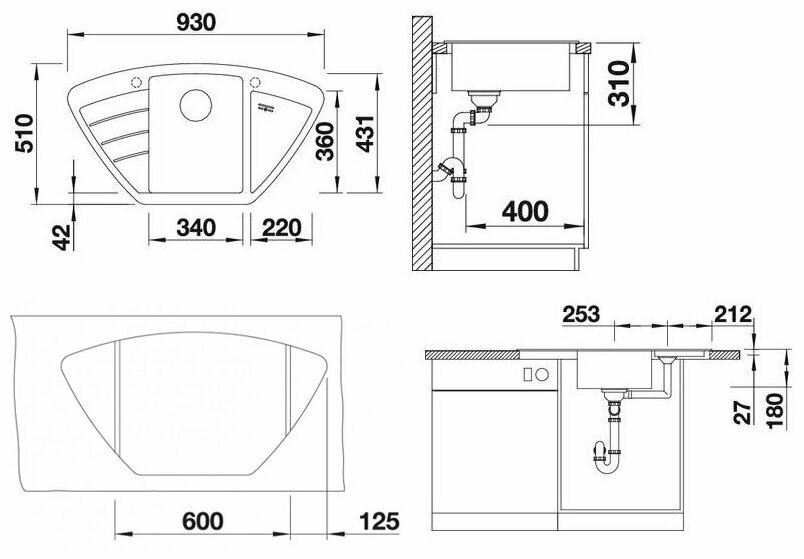 ширина шкафа 60 см - 90 x 90 см, комплектация: отводная арматура с корзинчатым вентилем 3 ½''