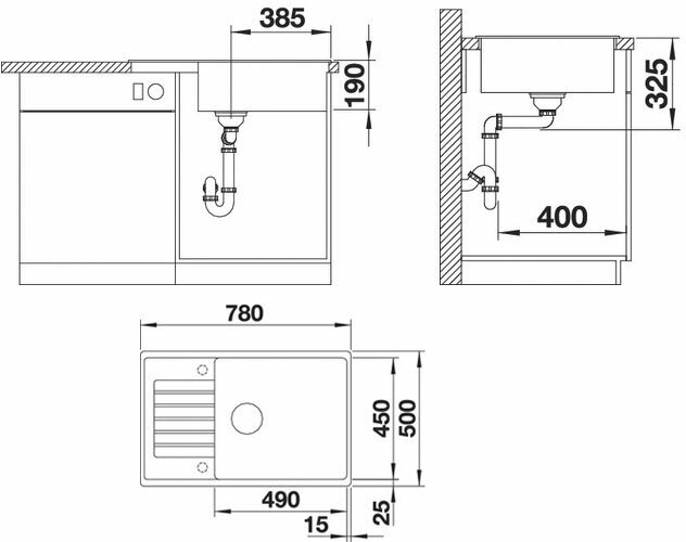 Размер монтажного отверстия под мойку (ШхГ)
